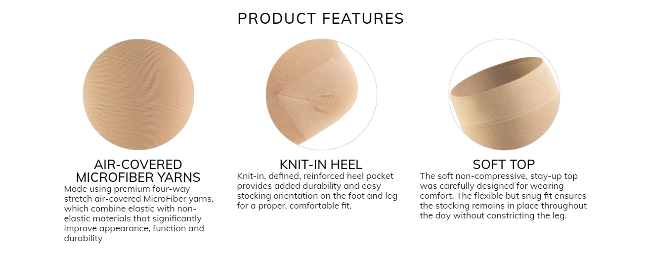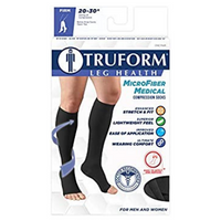 Truform MicroFiber Medical Compression Socks utilize graduated compression technology to help restore leg health – ideal when sitting or standing for long periods. These socks are made using premium four-way stretch air-covered MicroFiber yarns, which combine elastic with non-elastic materials that significantly improve appearance, function and durability.