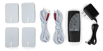The EMS foot circulation device comes with everything you need to help relieve sore, aching muscles. This includes the Circulation Plus, 1 remote control, 1 power cord, and 4 TENS electrode pads for targeted pain relief on your calves, hips, back, waist, and more.